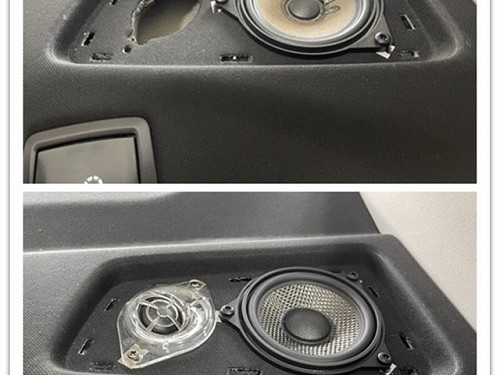 改裝師將門板的三角罩拆下來,隨后將詩芬尼nature4.2高音喇叭原位安裝固定在三角罩內(nèi)。