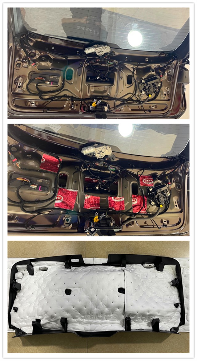 后備箱也是車內(nèi)噪音的主要來源,使用大能紅派及超級溫莎對尾門做雙層隔音處理,有效阻隔噪音傳入,使車身行駛時更加緊固。
