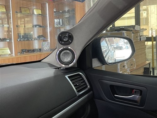 前聲場喇叭升級的是勁浪M6.3的三分頻,中音,高音倒模在A柱,中低音無損安裝在前門板,這套喇叭出色的設計和品質,聲音細膩、甜美、溫暖通透和流暢是發燒友們的至愛,自然也俘獲豐田漢蘭達車主的心。