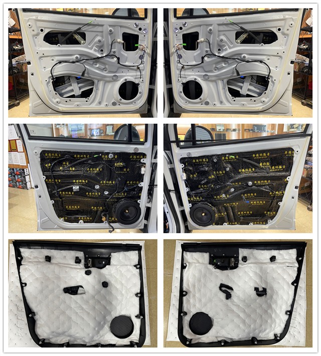 前門板使用安德納進行內外雙層隔音,門板飾蓋使用白棉進行填充,有效抑制共振產生及減少風噪的傳入,打造一個安靜的車廂環境