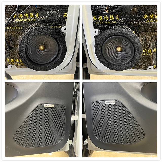 車主在試音室里試聽了法國勁浪165A-GL喇叭后,便對它一聽鐘情!隨即便決定用來升級前聲場。安靜的車廂是升級音響的前提,所以汽車隔音也要做好!先使用安德納對門板進行內外雙層止震隔音,將空洞的原車門板打造成解釋封閉的“箱體”,降低行車中鐵皮共振產生的噪音或外界傳入車內的噪音,加倍提升安裝在門板原位的喇叭的音質。