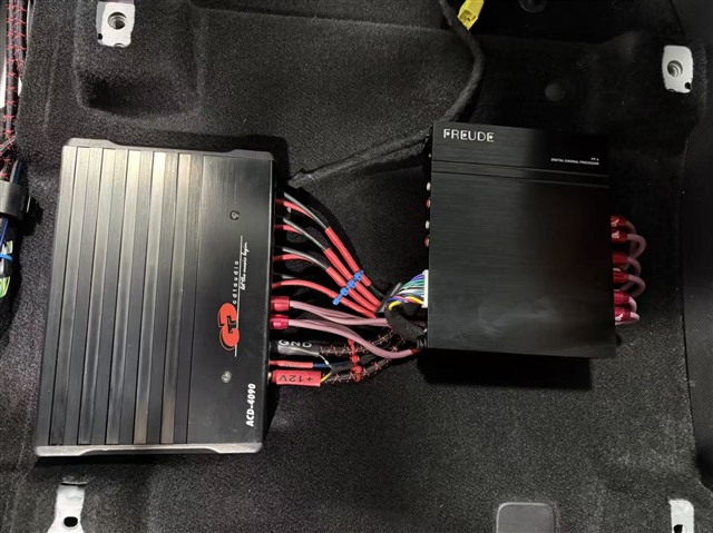 弗萊德 FP-6 處理器則負責音頻信號優化,精準調校音色平衡,讓音質更具層次感。弗萊德 8 寸有源低音的加入,填補了原車低頻不足的短板,帶來飽滿且富有彈性的低音效果。值得一提的是,弗萊德 FP-6 處理器與 ACD4090 功放均采用隱藏式安裝設計,巧妙安置于座椅底下,既不占用車內儲物空間,又能避免器材受到外界干擾,實現美觀與實用的完美兼顧。