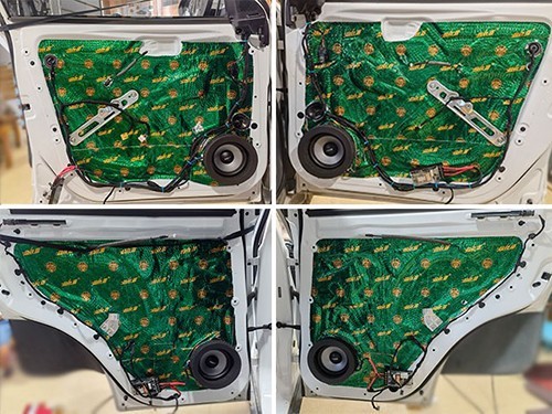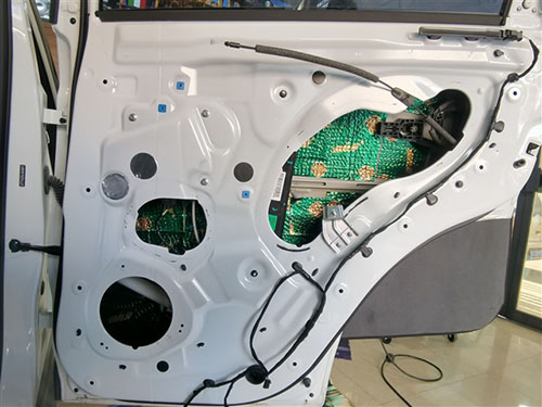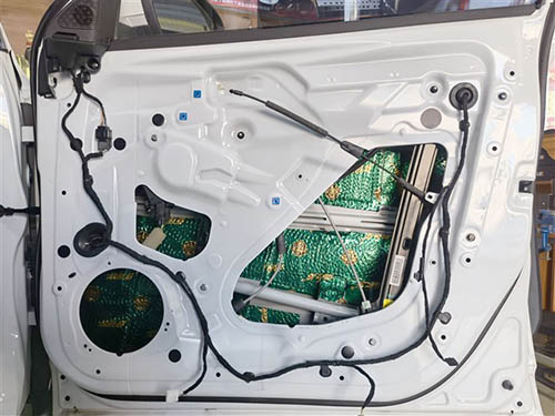 為了給汽車音響喇叭打造一個良好的工作環境,改裝技師采用大能超級盾隔音材料對車門做了雙層的隔音處理,這就像是在門板的周圍制作了一個箱體一般,一方面能夠減少噪聲對其的干擾,另外一方面還能夠有效的增加音樂的立體感。