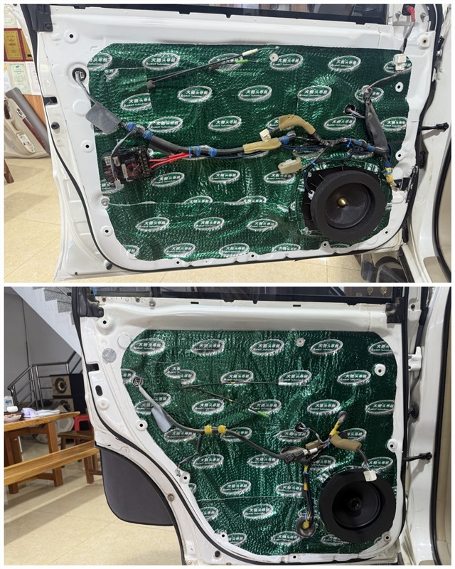 原車門板只有后門板有一層薄膜,無法有效隔絕噪音