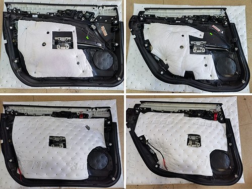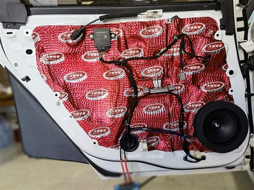 優秀的聲音表現離不開安靜的工作環境,使用了大能紅派隔音材料對汽車的門板做了三層隔音處理,提升門板的隔音效果,同時也為門板上安裝的喇叭提供了良好的工作環境。