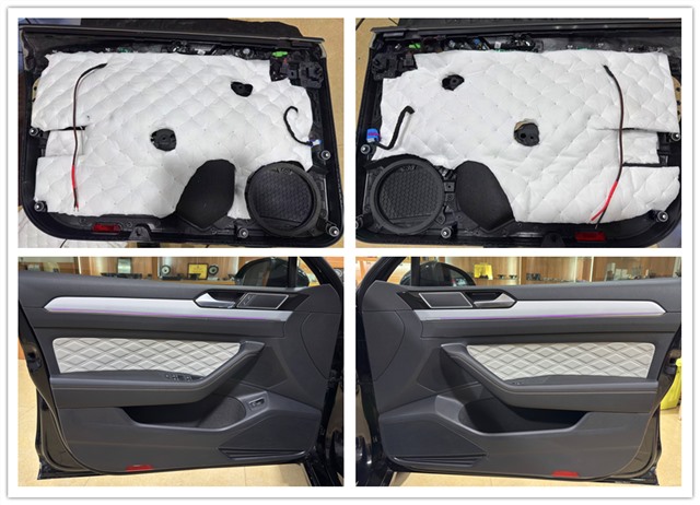 在安裝完喇叭后,使用吸音棉填充門板飾蓋,以優化聲音的反射和吸收效果,進一步提高音質。門板復原后,不留任何改裝痕跡,既保證了音響效果,又保持了原車的整潔與美觀。