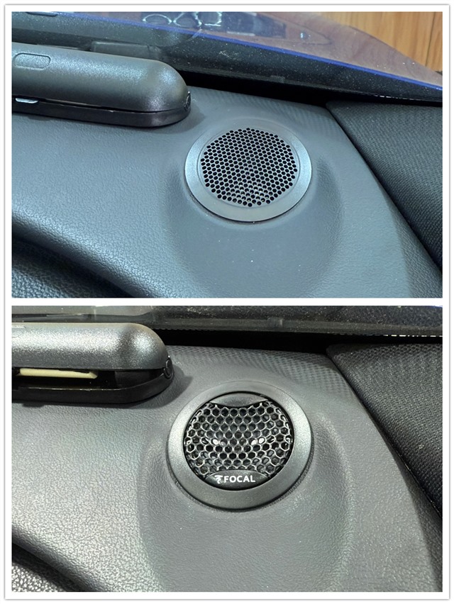 在使用GT隔音材料對門板做完隔音處理之后,前聲場升級了一套勁浪165A-GL兩分頻。高音無損替換安裝在儀表臺兩側(cè),中低音安裝在前門板。其音質(zhì)表現(xiàn)非常出色,高音清晰明亮,中低音飽滿有力,直接提升音樂的細節(jié)表現(xiàn)和立體感。后聲場升級一套勁浪ASE-165兩分頻,可以與前聲場喇叭形成優(yōu)勢互補,保證音樂味道統(tǒng)一性。