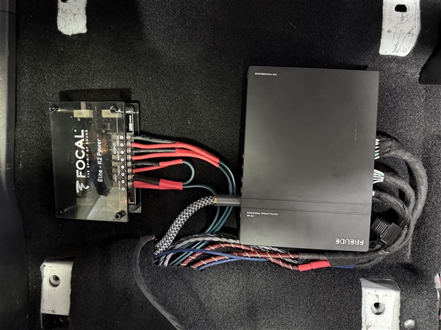在音響器材的選擇上,這位車主的眼光可以說是非常到位的:喇叭升級為法國勁浪黃盆KX2兩分頻,這套喇叭無論在解析力、聲音的通透度還是動態表現上都極為出色。高音安裝在門板三角位,聲場定位更準確。中低音喇叭則無損安裝在原位,既保證了音效,也不影響原車外觀。