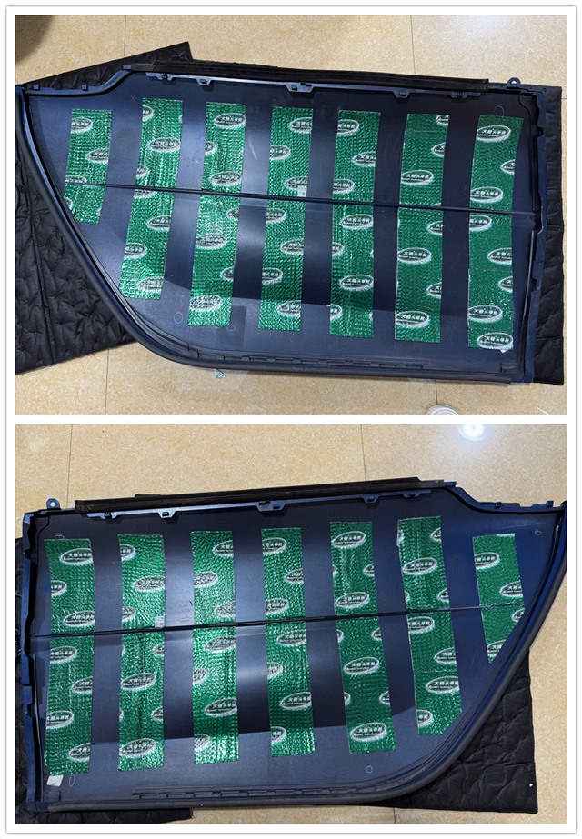 想要好聲音,隔音是基礎。改裝師對門板內層進行了條狀粘貼方式的大能超級盾隔音處理,能夠有效抑制門板共振,提升音響喇叭的工作環境。不僅如此,連門板飾蓋也進行了相同方式的隔音處理,真正做到從細節著手,打造更安靜、純凈的聽音環境。