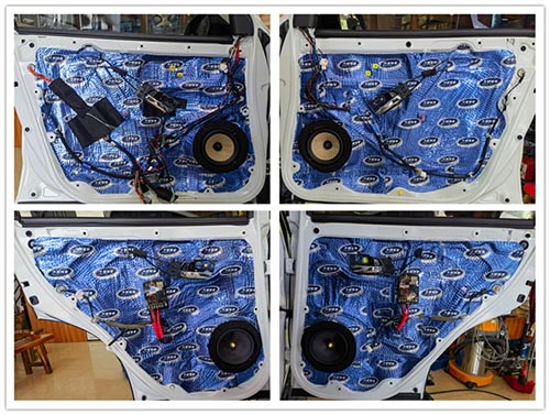 前門隔音后將中低音喇叭裝于門板原位,并使用了專業的美音圈,讓喇叭有更好的發聲效果