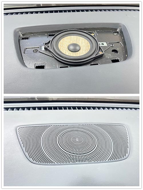 前后聲場均選用法國勁浪品牌的亞麻盆兩分頻套裝喇叭,這套產品以其出色的中高頻響應及醇厚自然的低頻表現著稱。高音單元精準無損安裝于前、后門板上方位置,中低音單元則置于門板下方原位,既保持了內飾完整性,又實現了理想的聲音指向性。此外,還特別配置了一只同樣采用亞麻盆技術的中音單元,巧妙地安裝在車輛中置位置,有效填補了聲場中間區域的音頻空白,進一步增強了整體的立體環繞感與細膩度。