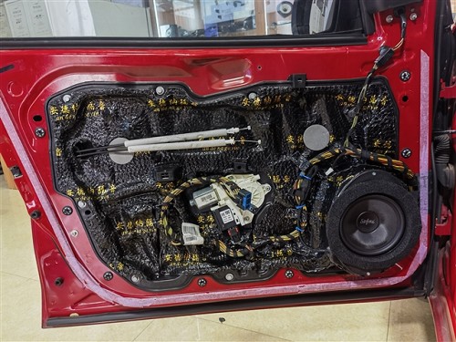 眾所周知,汽車隔音的好壞直接影響到車內(nèi)音響效果的發(fā)揮。改裝師先使用安德納隔音材料對門板進(jìn)行雙層隔音處理。隔音后前聲場升級一套詩芬尼S60兩分頻,詩芬尼S60高音原位無損安裝在儀表臺兩側(cè),中低音則安裝在前門板上。這樣的安裝方式不僅保持了車內(nèi)的原始美觀,同時也確保了聲音的精準(zhǔn)傳遞和自然擴(kuò)散。清晰、細(xì)膩的音質(zhì)讓駕駛者和乘客在行車過程中享受到高保真的音樂體驗(yàn)。