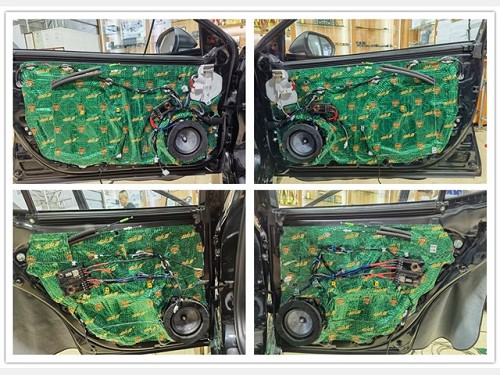 原車門板沒有進行有效的隔音措施,所以在升級音響前先對門板進行隔音處理