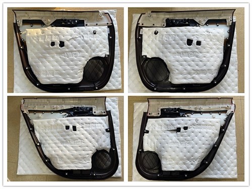門板是風(fēng)噪的主要傳入部位,改裝師不僅使用大能紅派對門板做了雙層止振處理,讓門板形成一個密封箱體,同時還使用超級溫莎,對門板內(nèi)飾做了填充吸音處理,從而有效阻止了風(fēng)噪的傳入。